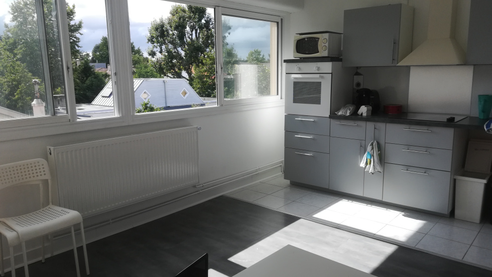 Dan une résidence proche du centre de Pessac, T2 situé au 2ème et dernier étage comprenant une entrée, un séjour avec cuisine ouverte aménagée, équipée d'une plaque de cuisson, une hotte aspirante et un four, une chambre avec placard, une salle d'eau avec WC. Cellier au RDC - Chauffage inclus dans les charges - Parking - Gardien.