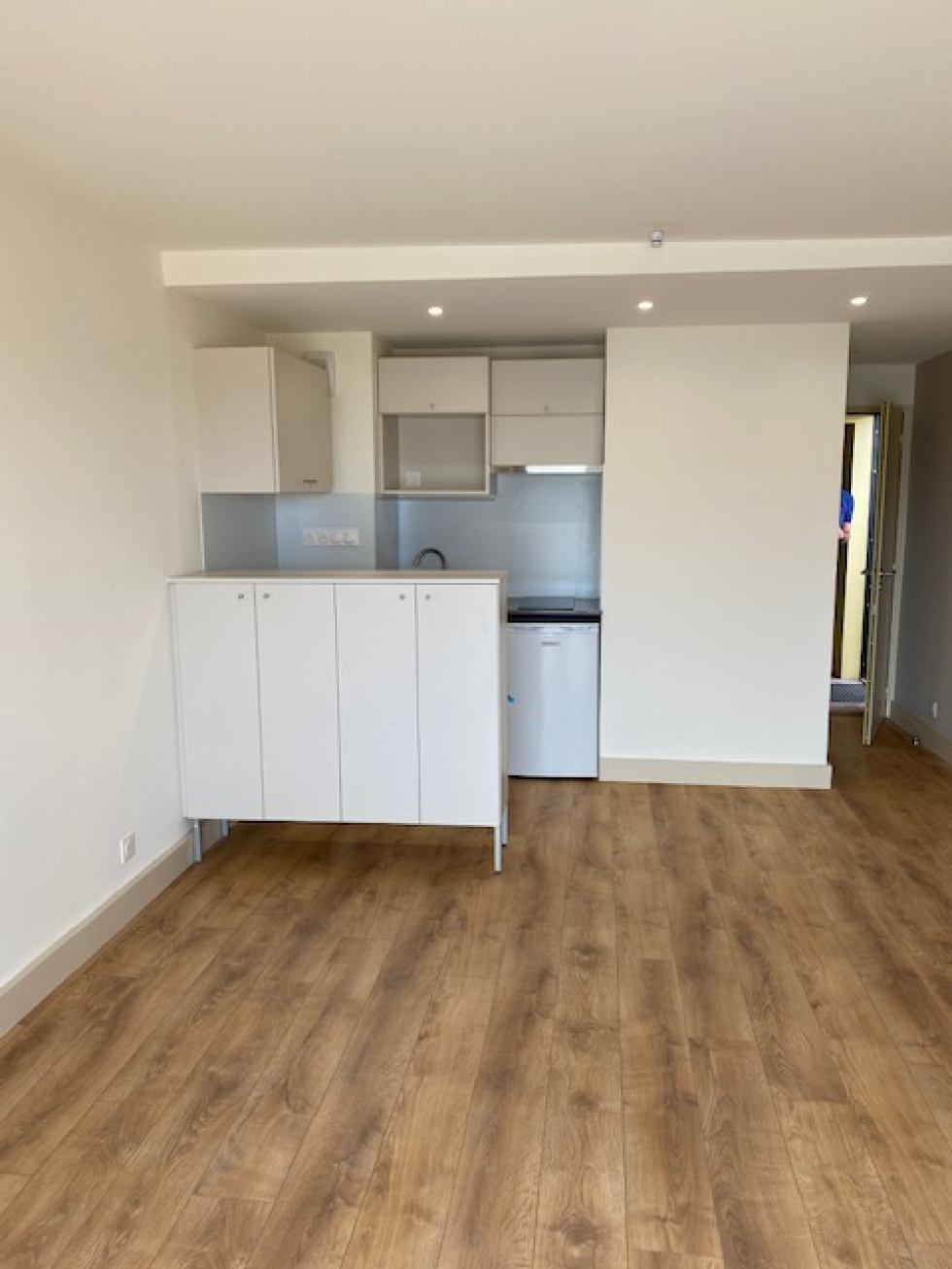 Dans une résidence récente proche de toutes commodités (Leclerc, boulangerie, arret de bus...), T1 au 2ème et dernier étage comprenant une pièce principale avec kitchenette équipée d'une plaque de cuisson et une hotte aspirante, une salle d'eau avec WC. Balcon de 5m² - un garage individuel. Avec assurance loyers impayés