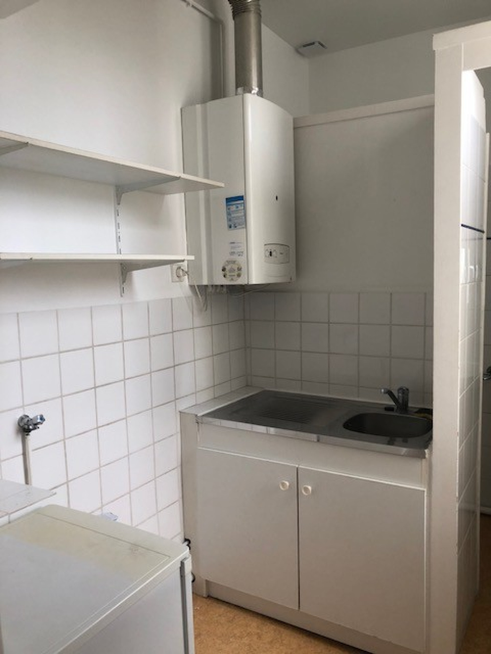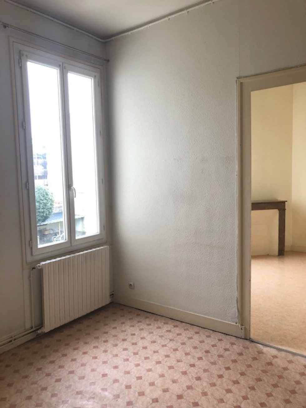 Dans un immeuble pierre proche Quais de Bacalan, T2 au 1er étage comprenant une entrée, un séjour, une cuisine séparée équipée d'un réfrigérateur, 1 chambre, une salle d'eau, un WC.