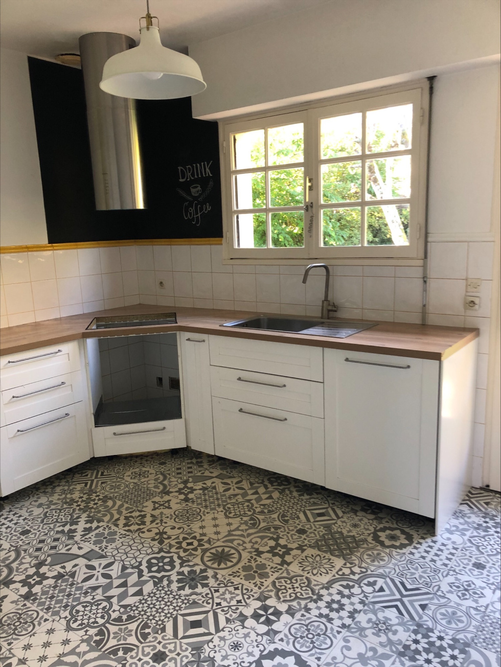 Proximité commerces et tram, maison de type 4 de plain pied comprenant une entrée, un séjour avec cheminée, une cuisine séparée aménagée, équipée d'une hotte aspirante, trois chambres, une salle de bains, un WC séparé, un cellier.
