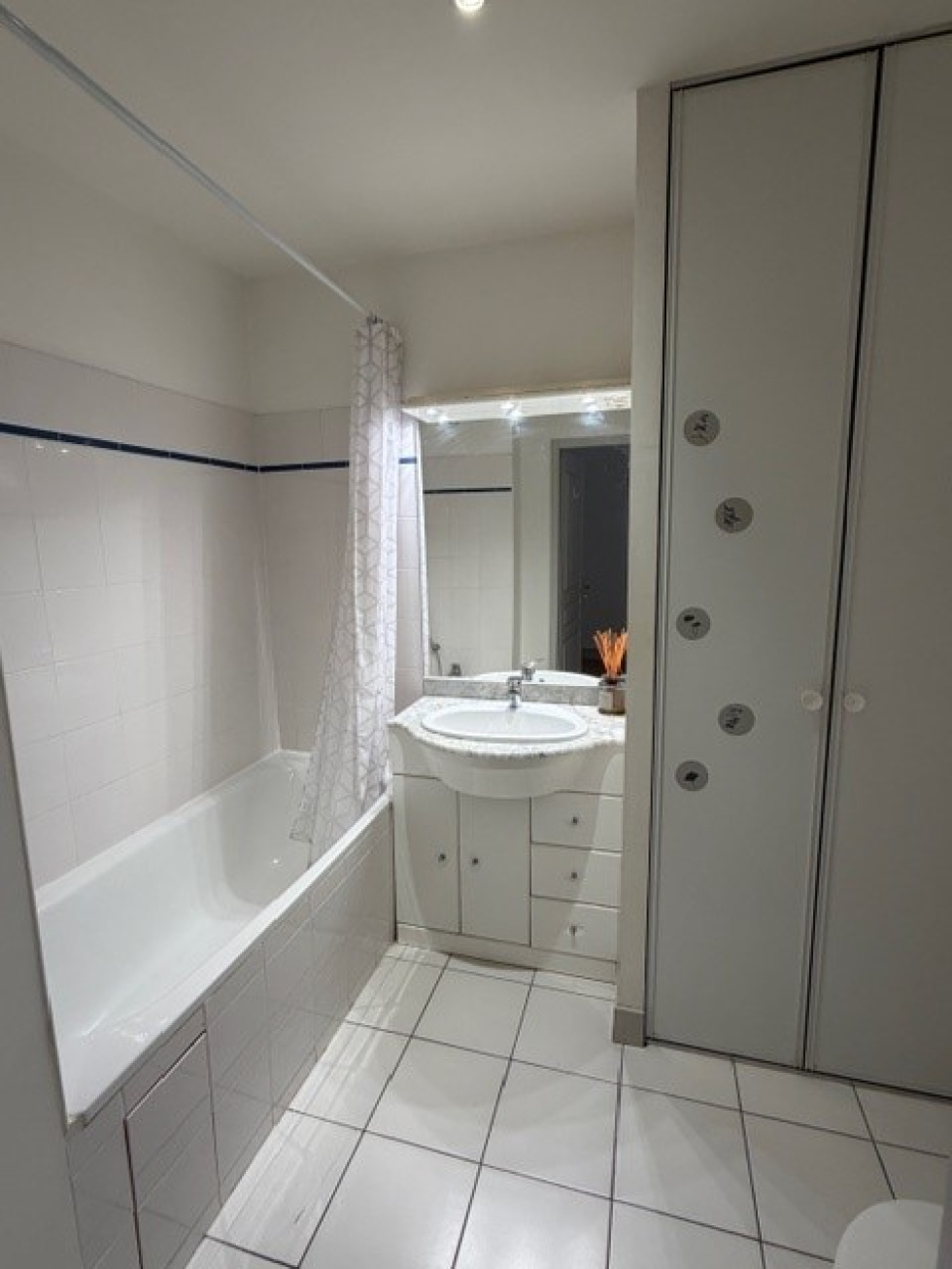 Dans un immeuble pierre rénové avec ascenseur situé à proximité de la place des Quinconces, T3 - 1er étage de 95.57m² comprenant une entrée avec placard, un séjour, une cuisine séparée, équipée d'une plaque de cuisson et une hotte aspirante, 2 chambres avec placards et salles de bains privatives, un WC. Chauffage gaz.